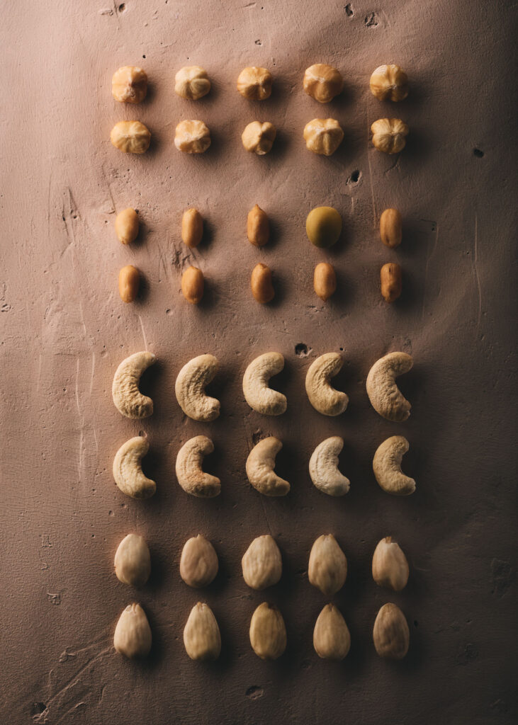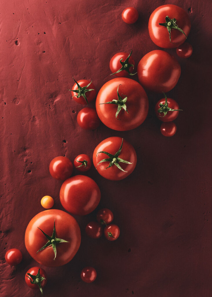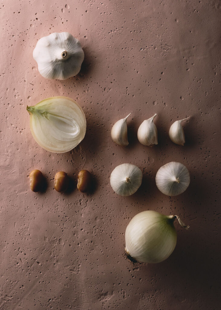 To ensure the products remained the focal point, we custom-designed three textured backdrops. The goal was to find the perfect balance: enough texture to provide depth, but subtle enough to let the individual textures of the produce shine. While the lighting remains soft and harmonious, it purposefully carves out the unique character of each ingredient. This project is a testament to the power of detail—making „much out of little“ and proving that the most impactful visuals are often those with the most complex, invisible conceptual work behind them.